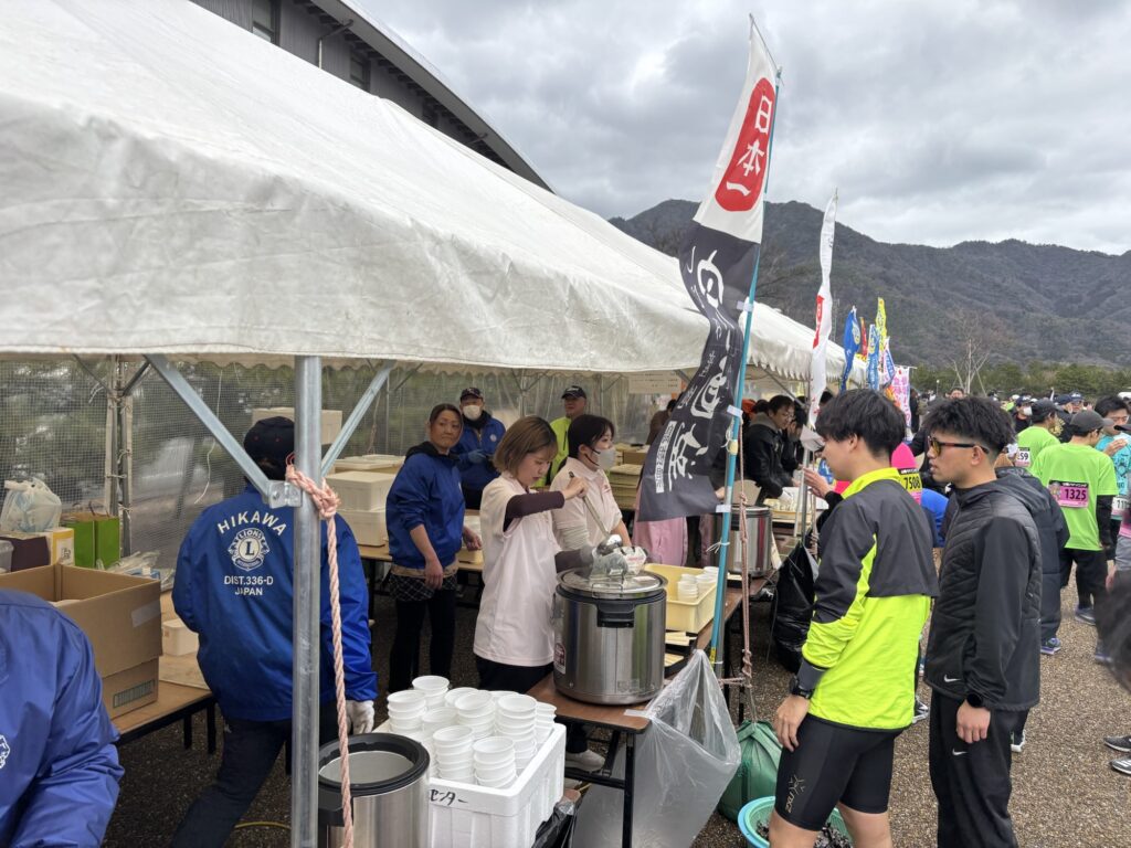 ゴール後は暖かいシジミ汁とおにぎりを頂き、着替えて同僚達を待ちました